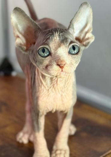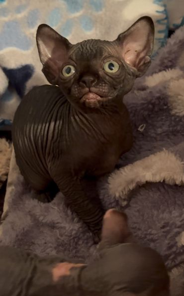 "Sphynx cats and kittens, regarded as one of the friendliest and most intelligent cat breeds, have become the 'dog lover’s' cat of choice. Sphynx are best described as a combination of a dog, a parrot, and a monkey. You cannot teach an old dog new tricks, but you CAN teach a Sphynx cat new tricks! They do not shed, so feel free to wear black again."