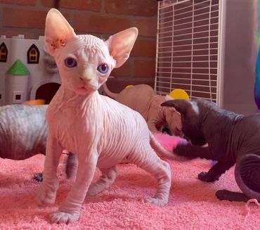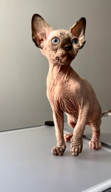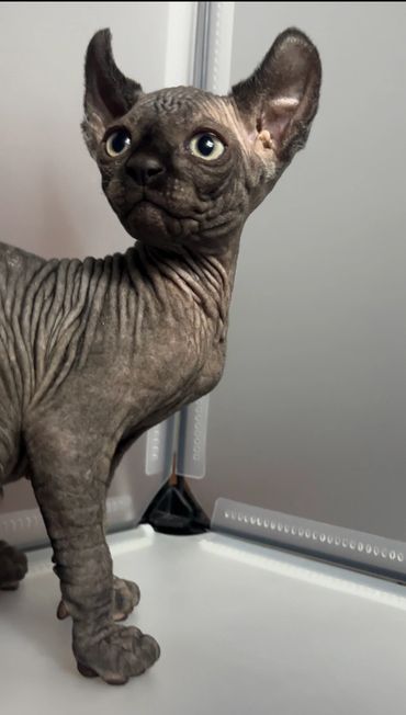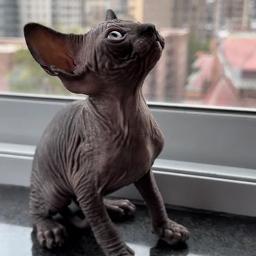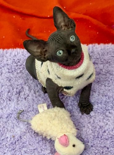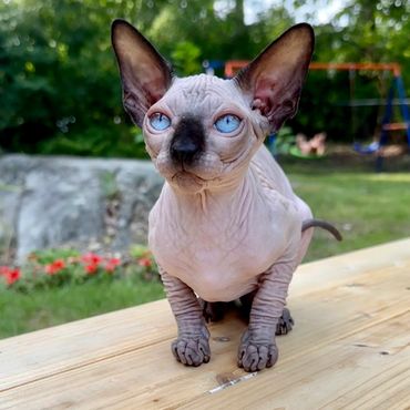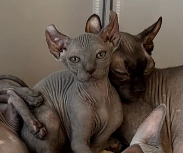 "Sphynx cats and kittens, regarded as one of the friendliest and most intelligent cat breeds, have become the 'dog lover’s' cat of choice. Sphynx are best described as a combination of a dog, a parrot, and a monkey. You cannot teach an old dog new tricks, but you CAN teach a Sphynx cat new tricks! They do not shed, so feel free to wear black again."